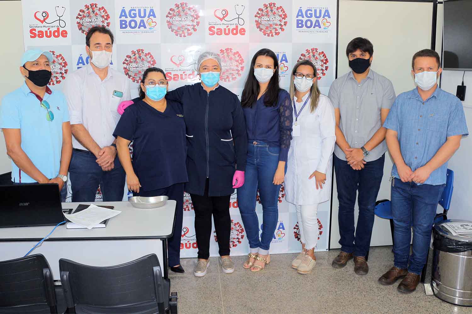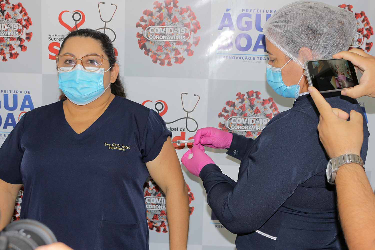 A primeira dose da vacina contra o covid-19 (Coronavac), foi aplicada hoje (quinta-feira) por volta das 10:00hs da manhã, no Centro de Imunização Carlos Cesar Gomes, anexo ao Centro Municipal de Saúde de Água Boa.