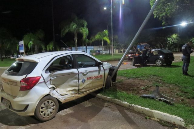 Segundo informações de um transeunte que passava pelo local, um Gol de cor escura que seguia na Avenida Planalto em alta velocidade chocou com um Ford Ka branco de uma empresa de transportes que estava contornando dentro da rotatória, e com o impacto chegou a danificar um poste de energia elétrica. O motorista não ficou ferido.