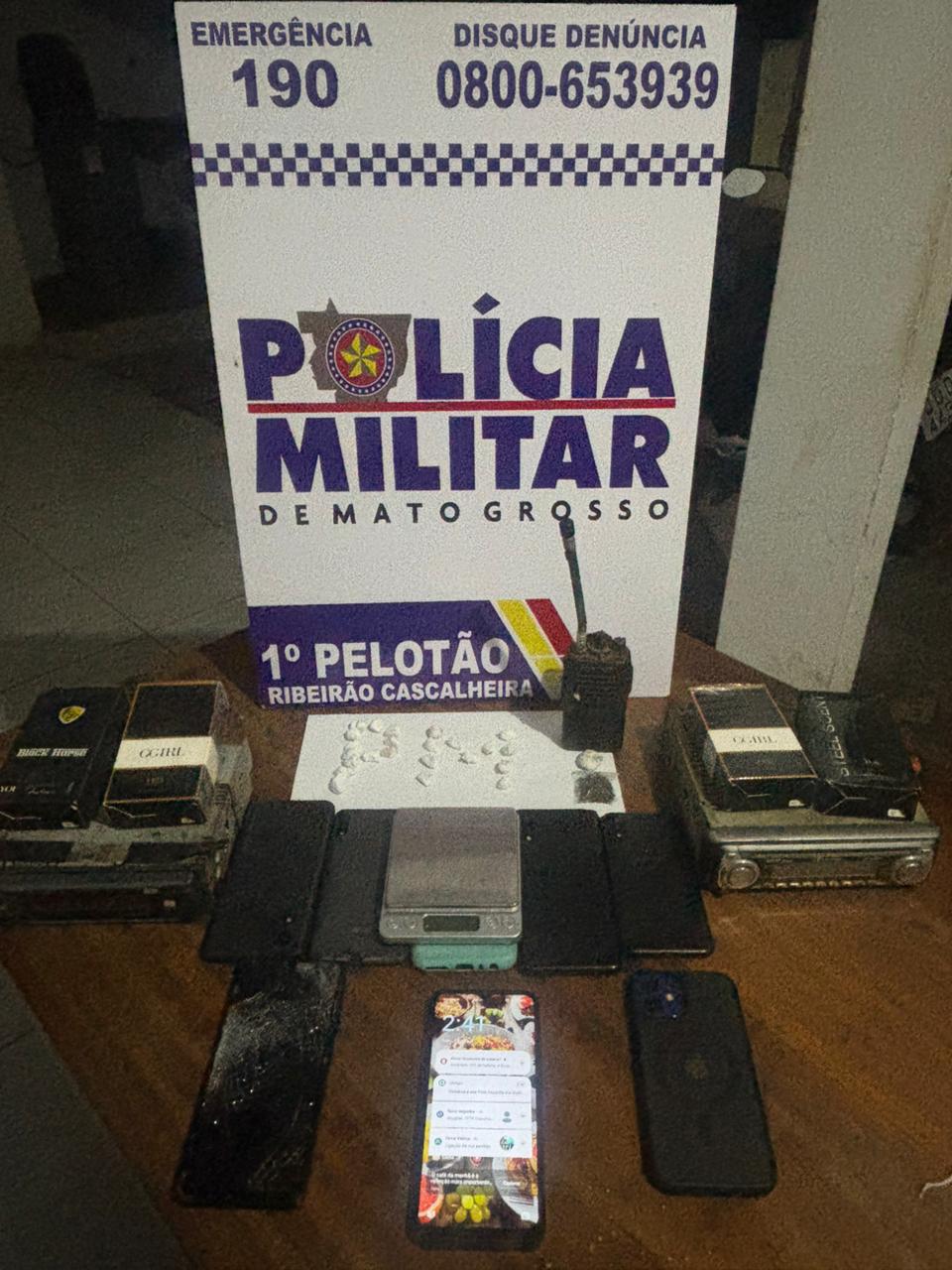 Uma ação integrada entre as forças de segurança resultou na apreensão de entorpecentes e materiais ilícitos na cidade de Ribeirão Cascalheira (MT). A operação foi conduzida pela Polícia Militar, com apoio da Polícia Civil e da PM de Canarana, após diversas denúncias e levantamentos de informações sobre o comércio de drogas na região.