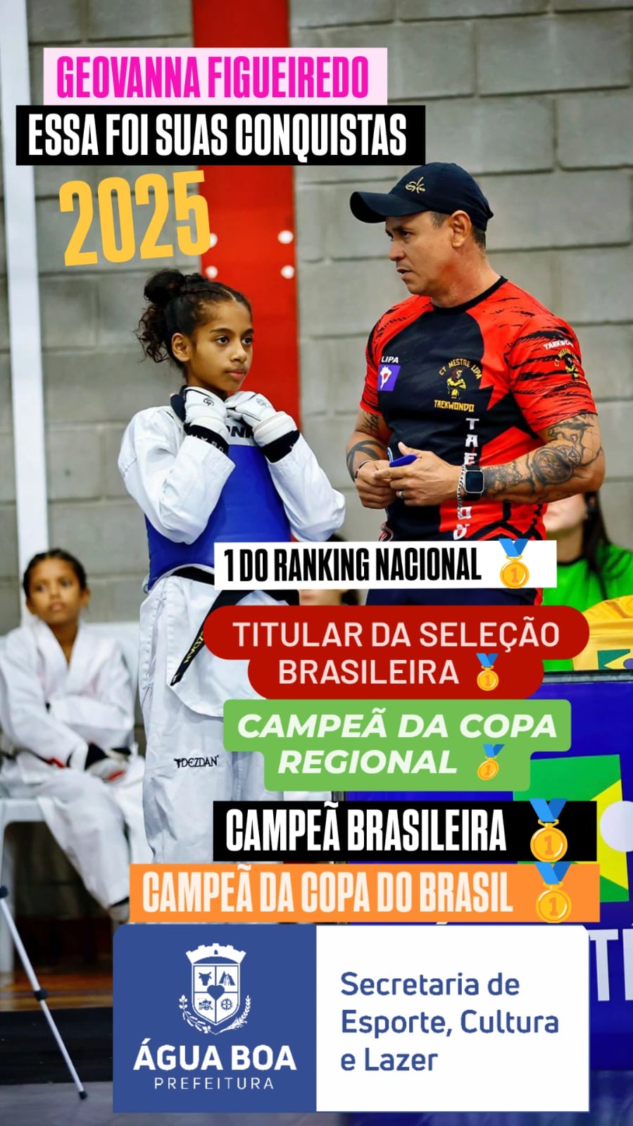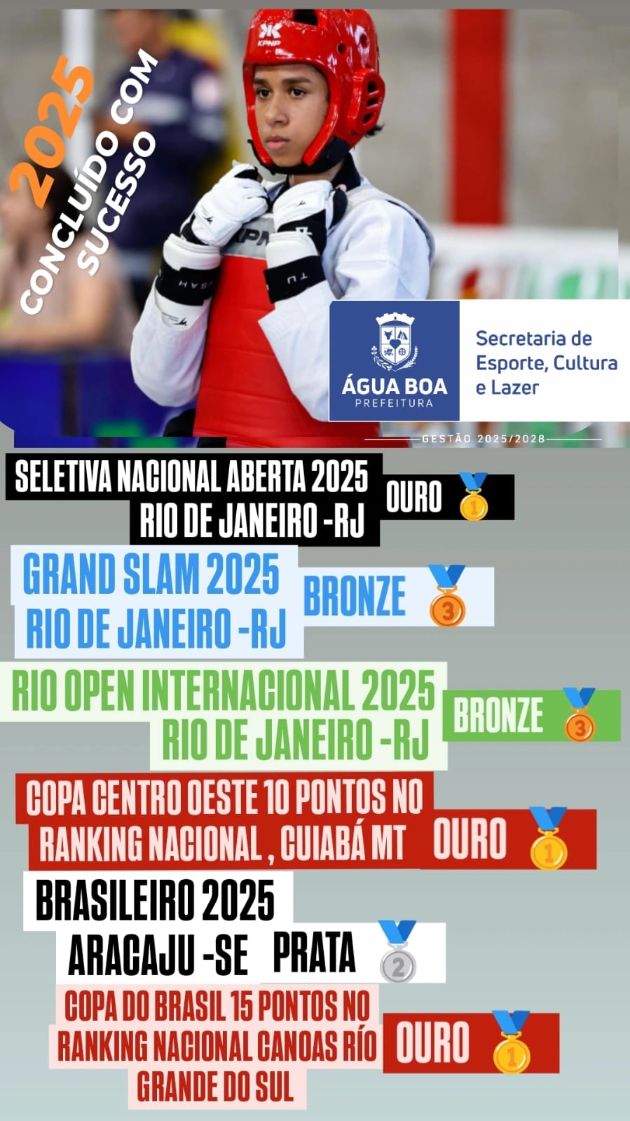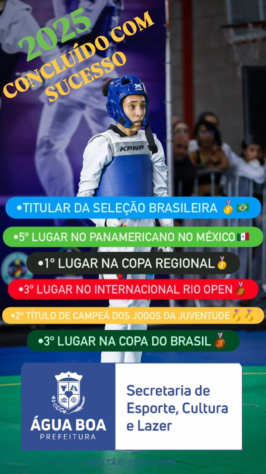 O ano de 2025 foi marcado por grandes resultados para os atletas de taekwondo de Água Boa, que se destacaram em competições regionais, nacionais e internacionais, levando o nome do município a importantes pódios do esporte. A equipe, apoiada pela Prefeitura de Água Boa por meio da Secretaria de Esporte, Cultura e Lazer, colecionou medalhas e posições de destaque em seletivas, copas e campeonatos de alto nível.