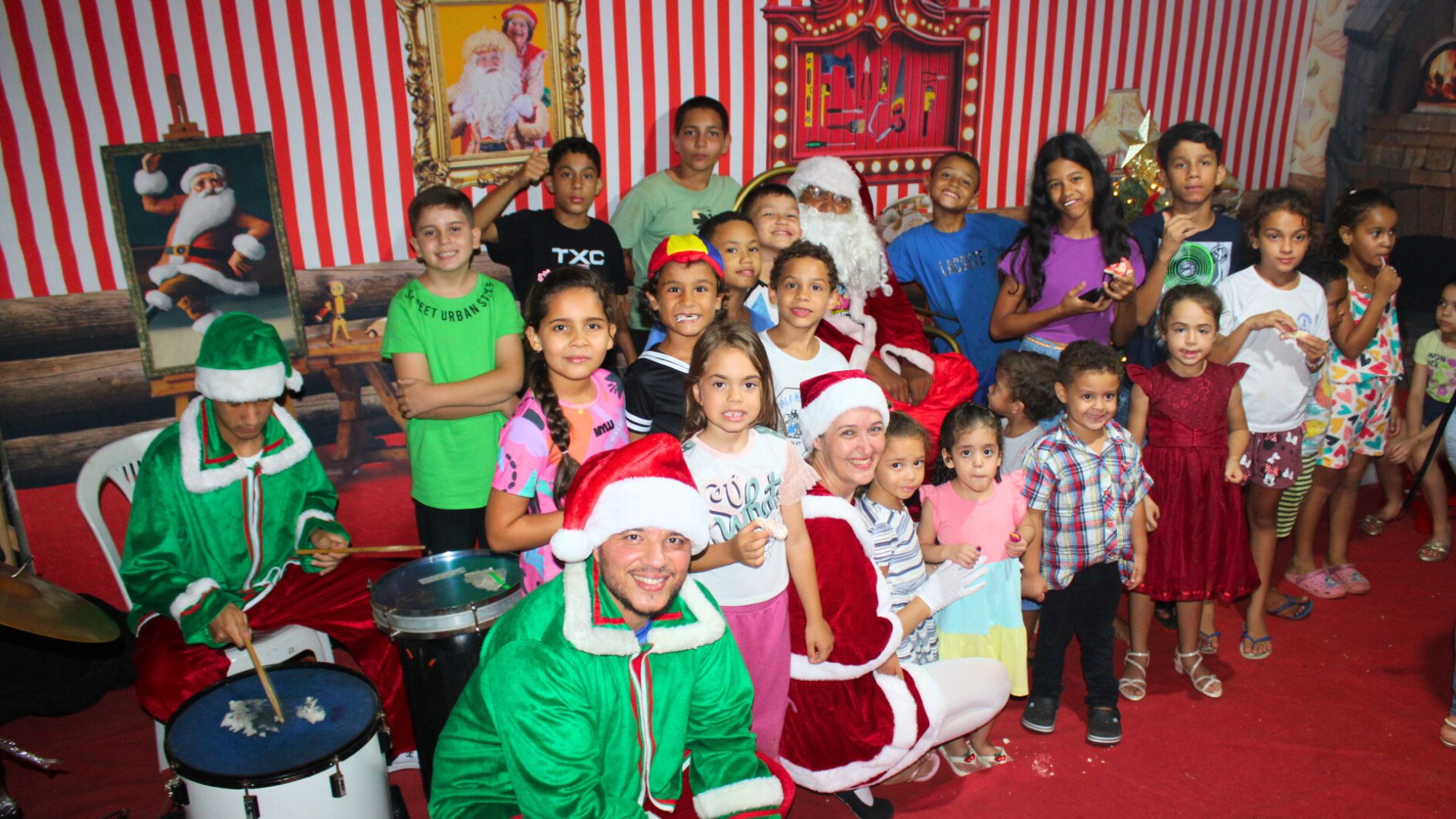O Papai Noel, acompanhado de seus ajudantes e personagens natalinos, encantou o público com a distribuição de guloseimas e o tradicional momento de fotos. As apresentações musicais ficaram por conta do Grupo de Flautas, coordenado pelo maestro Billy Brasil, por meio da oficina da Secretaria de Cultura.