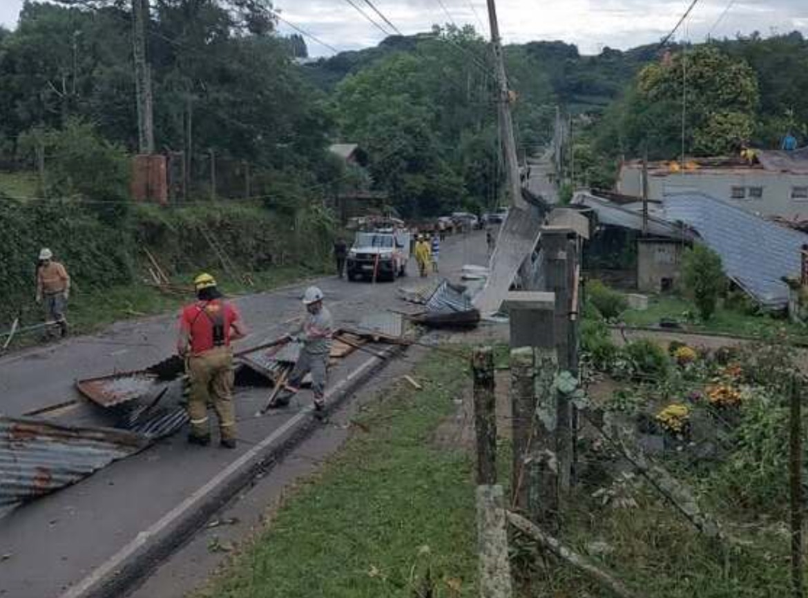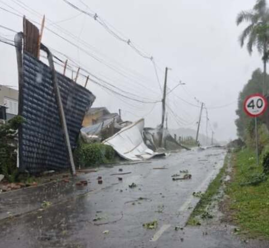 Imagens mostram destroços e a trilha de destruição deixada pelos ventos, que superaram 100 km/h. O interior de Farroupilha foi a área mais atingida.