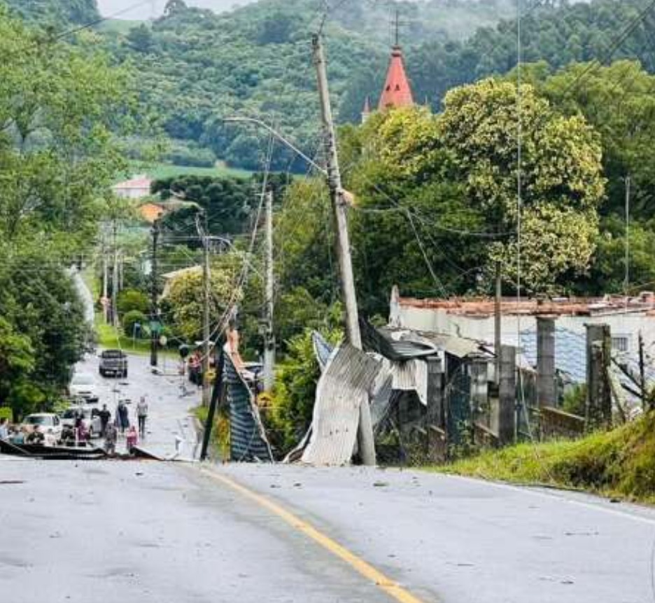 Um tornado atingiu a cidade de Farroupilha, na Serra do Rio Grande do Sul (RS), causando estragos em várias comunidades do município na tarde dessa sexta-feira (23). O fenômeno foi o segundo registrado na localidade em um intervalo de 15 dias, de acordo com o Centro de Monitoramento da Defesa Civil estadual.