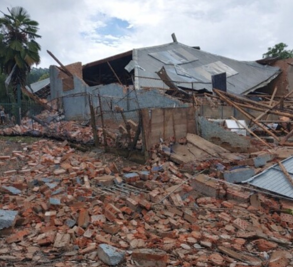 Na comunidade de Vila Rica, as chuvas deixaram 20 residências destelhadas. Uma escola de ensino fundamental também teve o telhado arrancado.