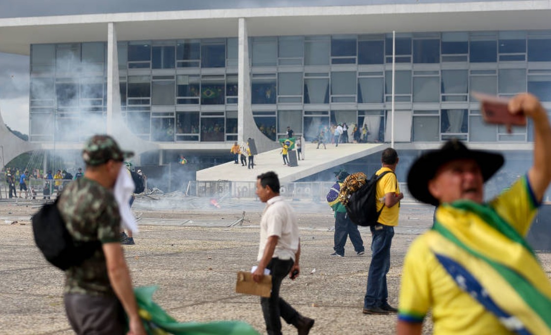 Naquele domingo, manifestantes vindos de diversas regiões do Brasil invadiram e vandalizaram o Congresso Nacional, o Palácio do Planalto e o Supremo Tribunal Federal (STF). Obras de arte, móveis históricos e estruturas dos prédios públicos foram destruídos. O STF foi o edifício mais atingido. No dia seguinte, a então presidente da Corte, ministra Rosa Weber, conduziu uma visita institucional ao local e afirmou que caberia ao tribunal punir todos os responsáveis, em um gesto simbólico de defesa da democracia.