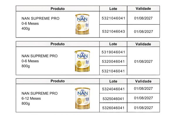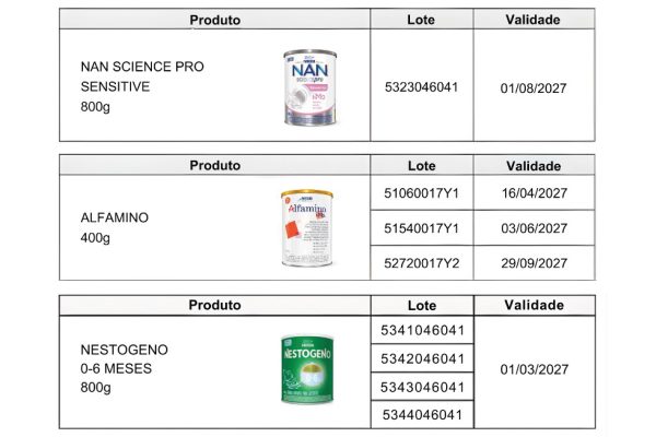 A proibição atinge lotes específicos de fórmulas infantis da Nestlé. Entre as marcas citadas pela Anvisa estão: