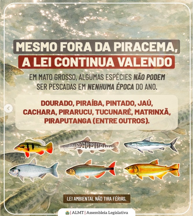 Apesar do fim do defeso, a Secretaria de Meio Ambiente (Sema-MT) alerta que permanecem válidas as exigências legais. É obrigatório portar a carteira de pescador, respeitar limites de captura, espécies proibidas e restrições em áreas de conservação.