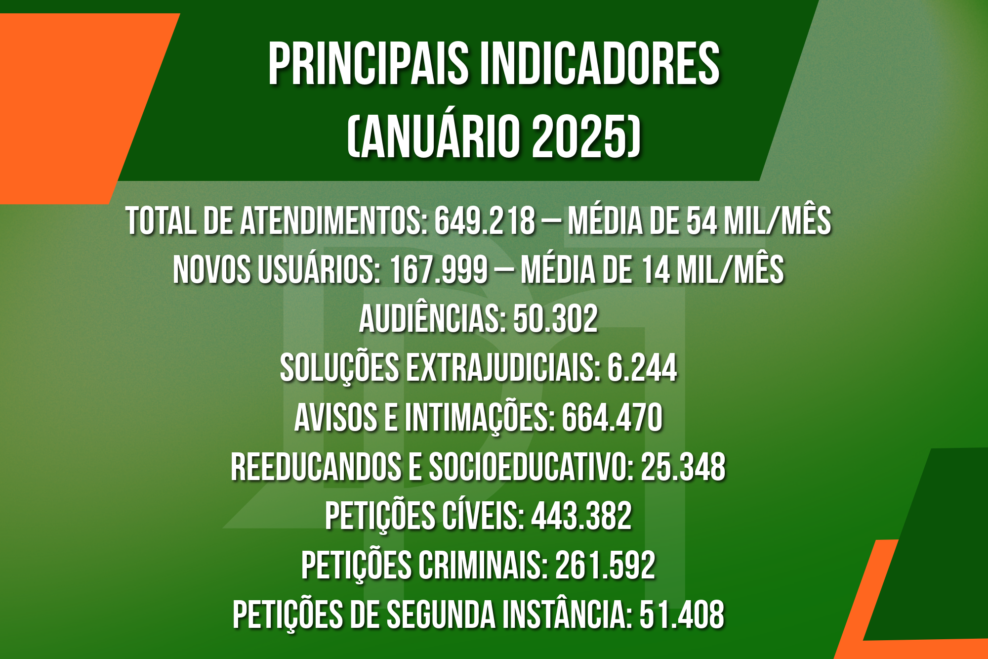 No campo processual, a alta demanda refletiu-se na produção jurídica da instituição. Foram elaboradas 443.382 petições na área cível e 261.592 na área criminal. Além disso, a equipe técnica da Defensoria processou mais de 664 mil avisos e intimações, e protocolou 51.408 petições em segunda instância.