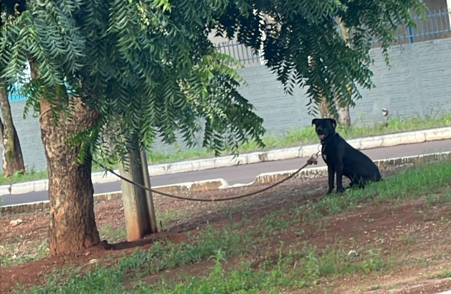 O responsável informou que, ocasionalmente, deixa o cachorro amarrado na praça por cerca de 15 minutos para que ele faça suas necessidades fisiológicas, já que o quintal da casa é totalmente cimentado. E que mesmo em dias chuvosos preferiu não privar o animal do seu momento