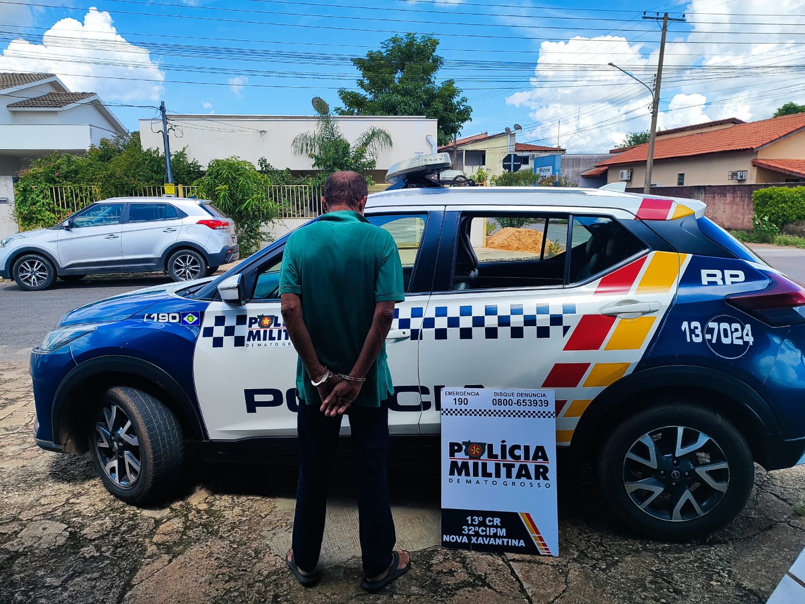 Em Nova Xavantina, a equipe realizava rondas pela área central quando abordou dois homens que demonstravam comportamento suspeito ao observar estabelecimentos comerciais. Durante a checagem dos dados, foi identificado um mandado de prisão em aberto contra um dos abordados, expedido pela 4ª Vara Criminal da Comarca de Anápolis (GO).