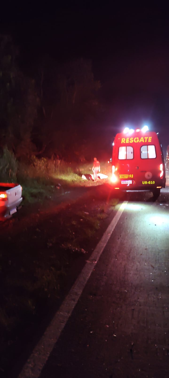 Ao chegarem ao local, os militares encontraram o veículo fora da pista de rolamento, apoiado lateralmente. A vítima permanecia no interior do automóvel, consciente e orientada, porém com fortes dores em um dos membros superiores e múltiplas lesões pelo corpo, incluindo ferimentos na região craniana e facial, com sangramento moderado.