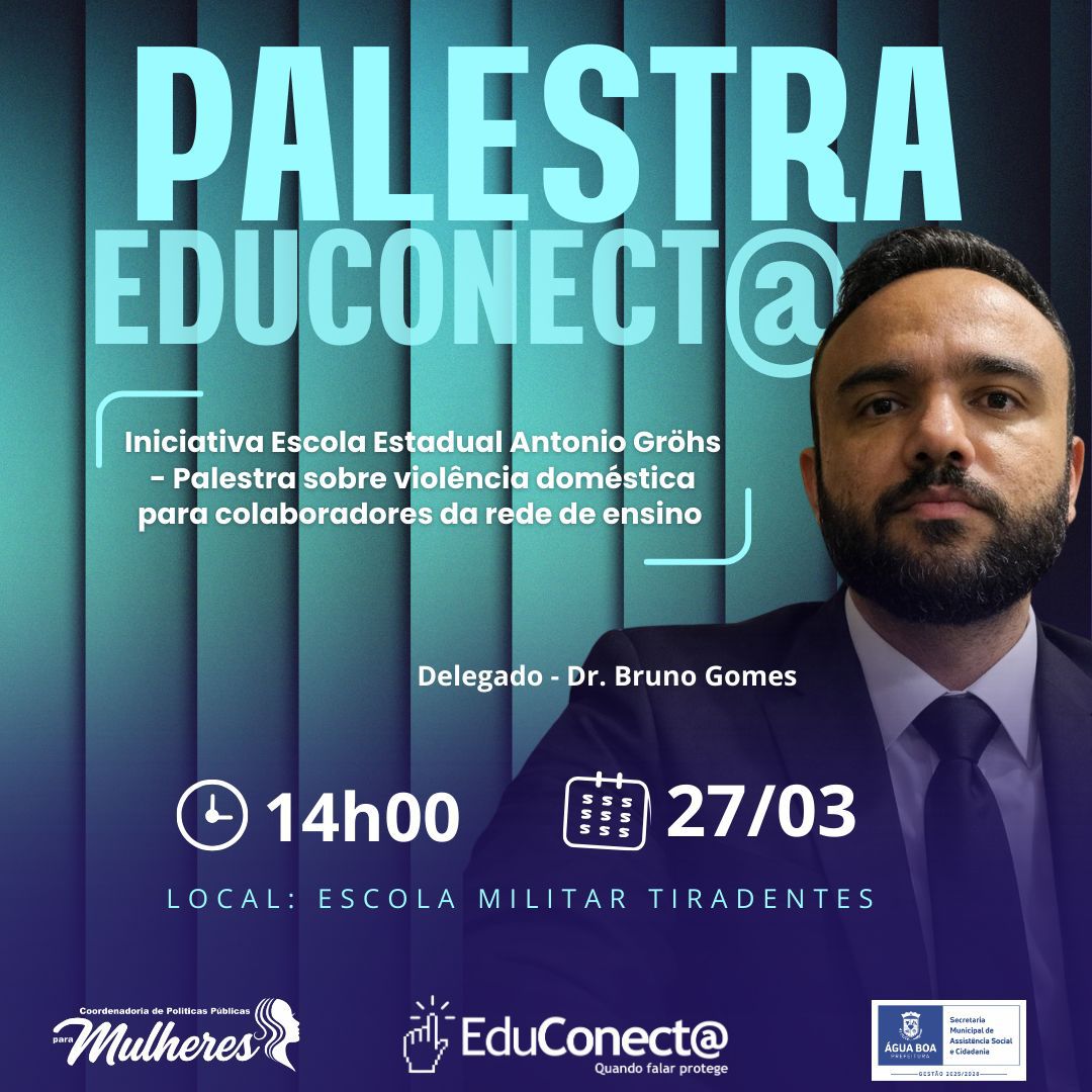 A Escola Estadual Antonio Gröhs sedia, no próximo dia 27 de março, às 14h, uma importante palestra sobre violência doméstica voltada aos colaboradores da rede de ensino. A iniciativa faz parte do projeto EduConecta, que busca promover informação, conscientização e proteção por meio da educação.