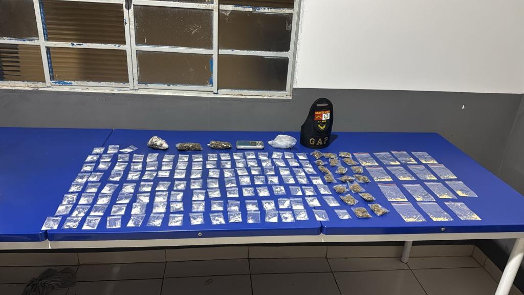 Em Sinop, a Força Tática prendeu um homem de 21 anos em um bar, apreendendo maconha, cocaína e um simulacro de fuzil, além de balança de precisão e rádios comunicadores, reforçando o combate a pontos de venda de drogas na cidade.