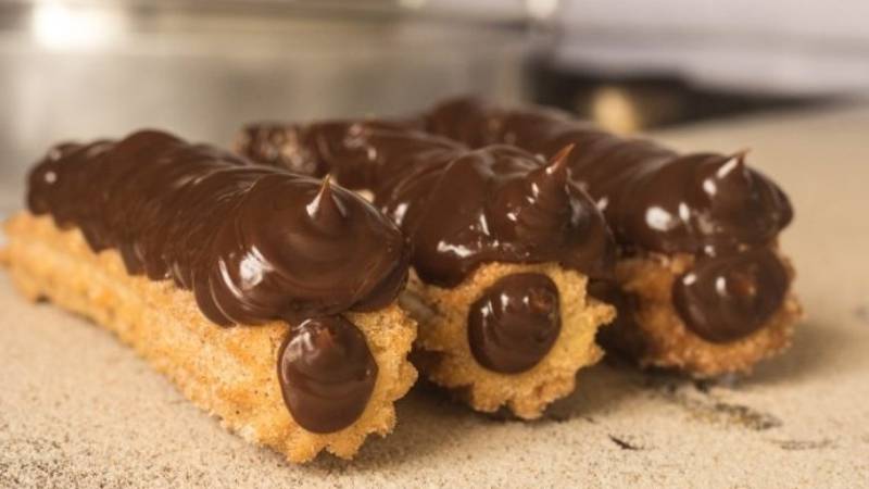O churros custam apenas 5 reais, nas opções doce de leite e chocolate. A equipe faz a entrega em domicílio para pedidos acima de 10 unidades.