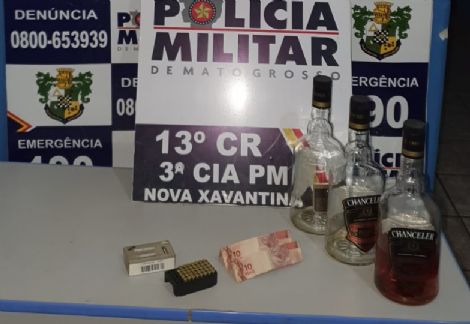 Ele foi encontrado com três garrafas de whisky, sendo duas vazias e uma cheia e 39 munições de calibre 22