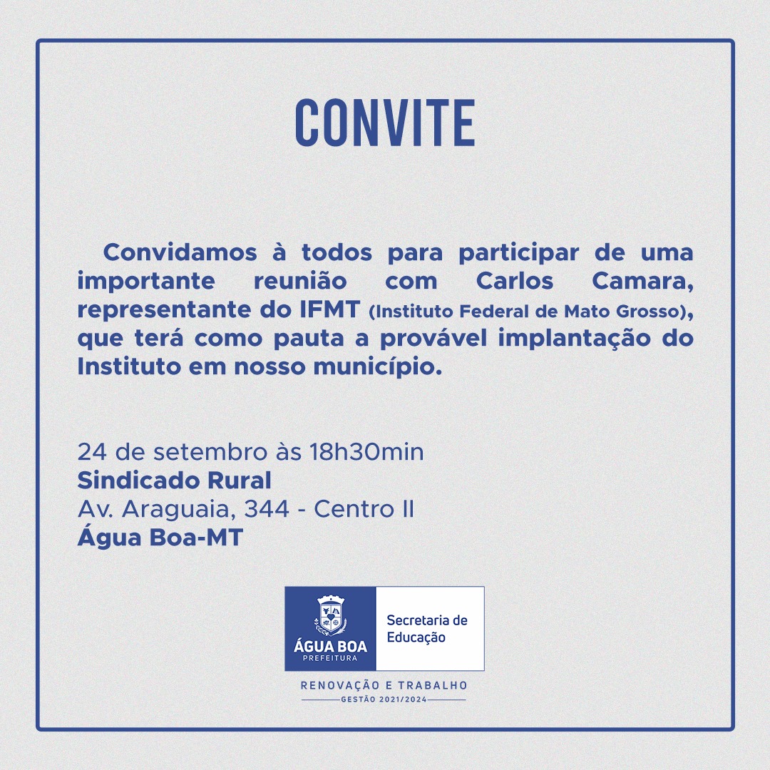Reunião discutirá a possível implantação do Instituto Federal de Educação, Ciência e Tecnologia de Mato Grosso - IFMT em Água Boa