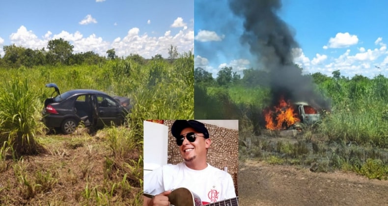 Com a colisão, o veículo do cantor saiu da pista e tempo depois pegou fogo.