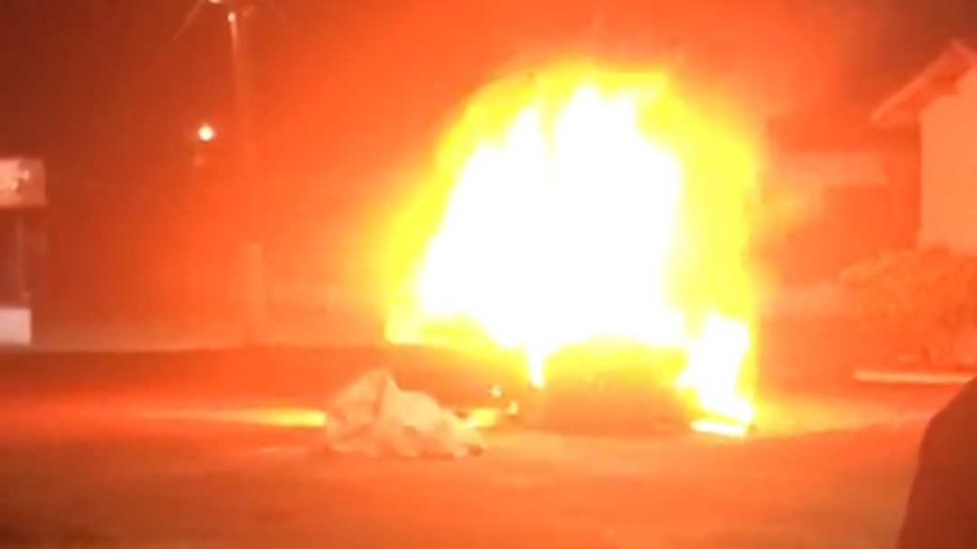 Carro pega fogo no parque de exposições de Água Boa; Veja video