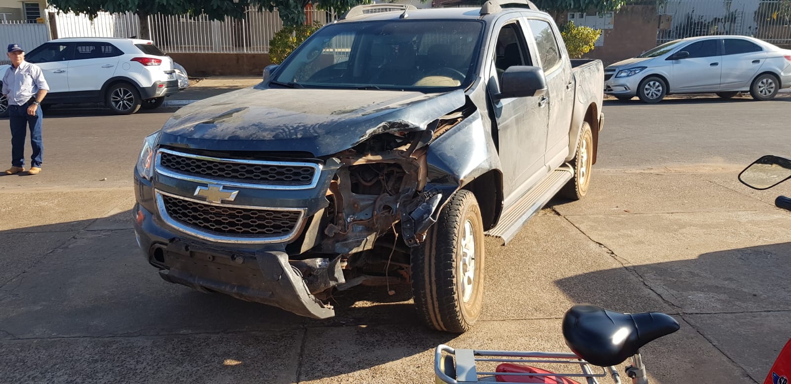 Segundo informações, o motorista da caminhonete que é funcionário em uma fazenda do município, deu duas voltas em torno da rotatória em alta velocidade e perdeu o controle do mesmo, batendo no veículo do casal, um Ford KA, que estava estacionado e atropelando a vítima em seguida.