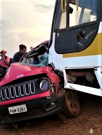 Um grave acidente envolvendo um ônibus e um Jeep Renegate deixou um ferido e uma vítima fatal por volta das 18:40h da tarde desta segunda-feira (26.09), na MT-020, próximo à intersecção com a MT-427, que dá acesso à Gaúcha do Norte – MT.