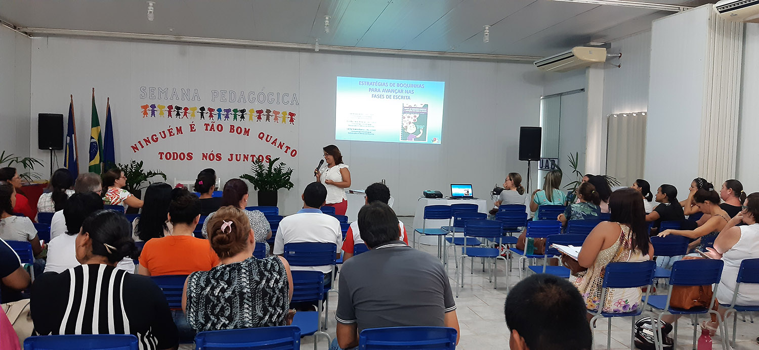 Já no ensino fundamental, 176 profissionais acompanharam a palestra de Maísa Gomes Bezerra, psicopedagoga e multiplicadora do Método Boquinhas, o foco de seu trabalho são as estratégias no avanço das fases da escrita. Planejamento; Organização do tempo pedagógico; Metas e métodos; Mediação desde a Educação Infantil; Estimulação adequada, planejada, diretiva e lúdica, e respeito aos limites individuais, foram alguns dos assuntos abordados.