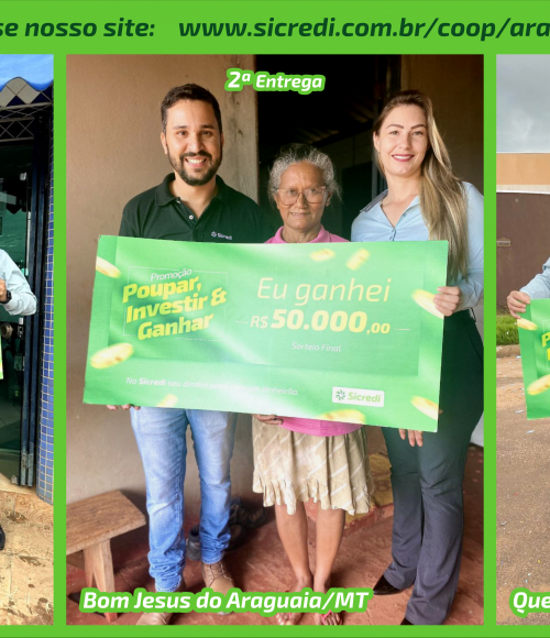 Sicredi entrega cheques de 50 mil reais da promoção Poupar, Investir e Ganhar