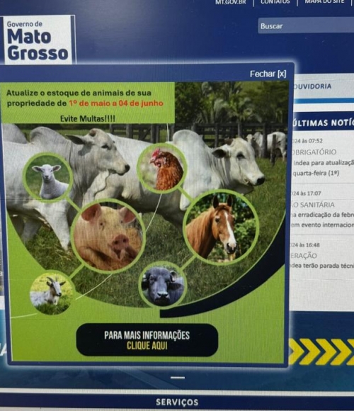 Prazo para produtores de MT informarem ao Indea estoque de rebanho termina no dia 4 de junho