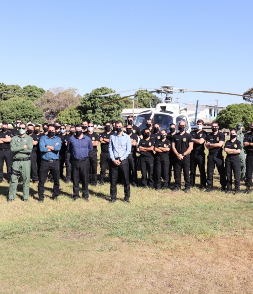 Delegado e deputado Claudinei com os 30 delegados nomeados, este ano, na Academia de Polícia.