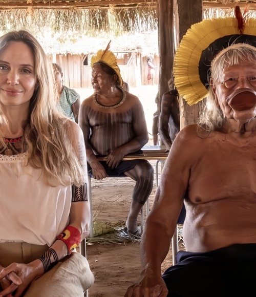 Angelina Jolie encontra cacique Raoni no Xingu, em Mato Grosso