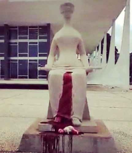 Estátua da Justiça sofre ataque após decisão do STF sobre aborto