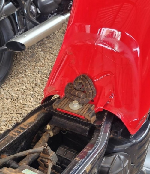 Mecânico encontra cobra escondida dentro de moto durante manutenção em MT