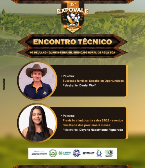 Encontro técnico em Água Boa debaterá sucessão familiar e previsão climática da safra 25/26