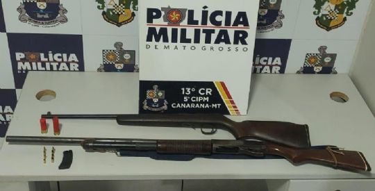 Questionado sobre as armas de fogo, o homem afirmou possuir uma espingarda calibre 12, ainda com a documentação irregular, e um rifle calibre 22.