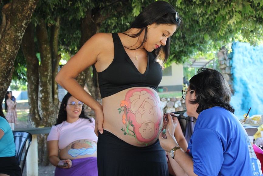 Pintura gestacional celebra a maternidade no Cantinho da Cegonha