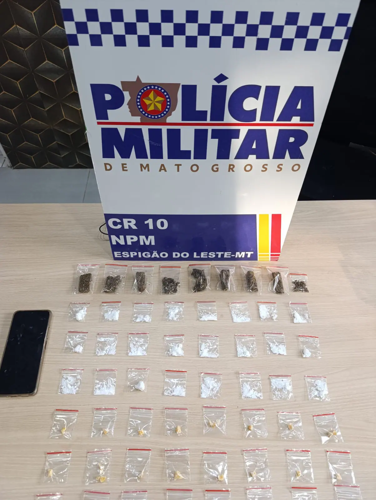 Espigão do Leste (MT) – A Polícia Militar prendeu em flagrante, na tarde de quarta-feira (1º/10), um homem identificado pelas iniciais D.O., conhecido por diversos apelidos, suspeito de envolvimento com o tráfico de drogas no distrito de Espigão do Leste.