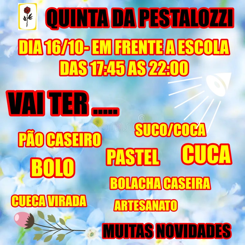 A Associação Pestalozzi de Água Boa realiza nesta quinta-feira mais uma edição da tradicional “Quinta da Pestalozzi”, em frente à escola. O evento acontece das 17h45 às 21h, reunindo sabores, solidariedade e produtos artesanais.