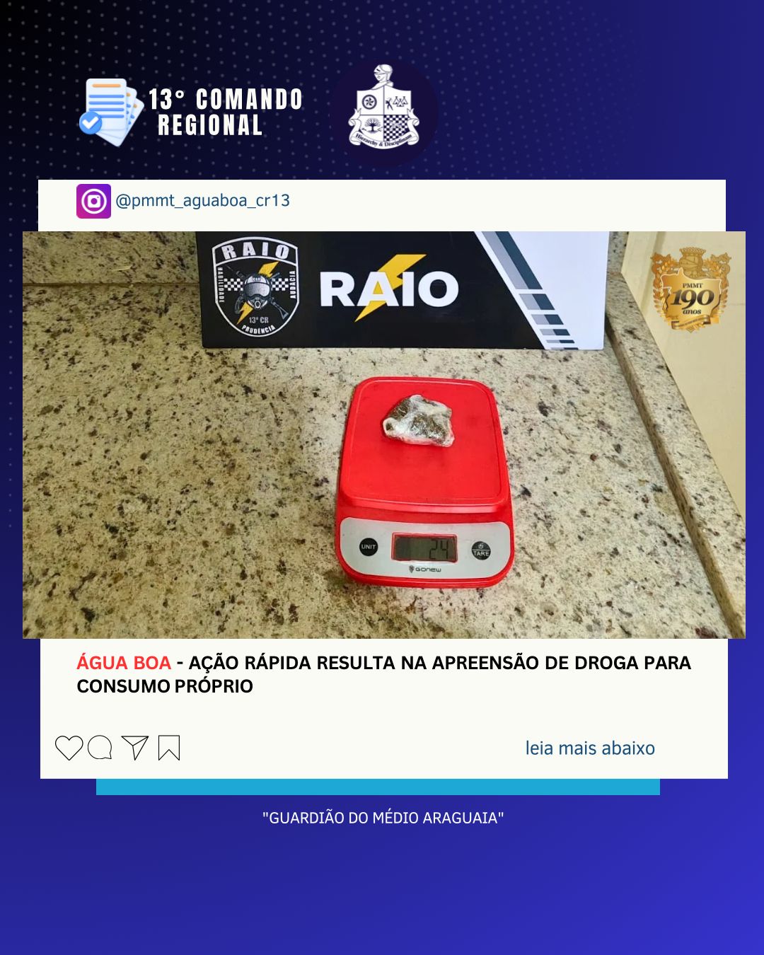 De acordo com a Polícia Militar, a ocorrência foi registrada como posse de entorpecente para consumo pessoal, conforme previsto na Lei nº 11.343/2006.
