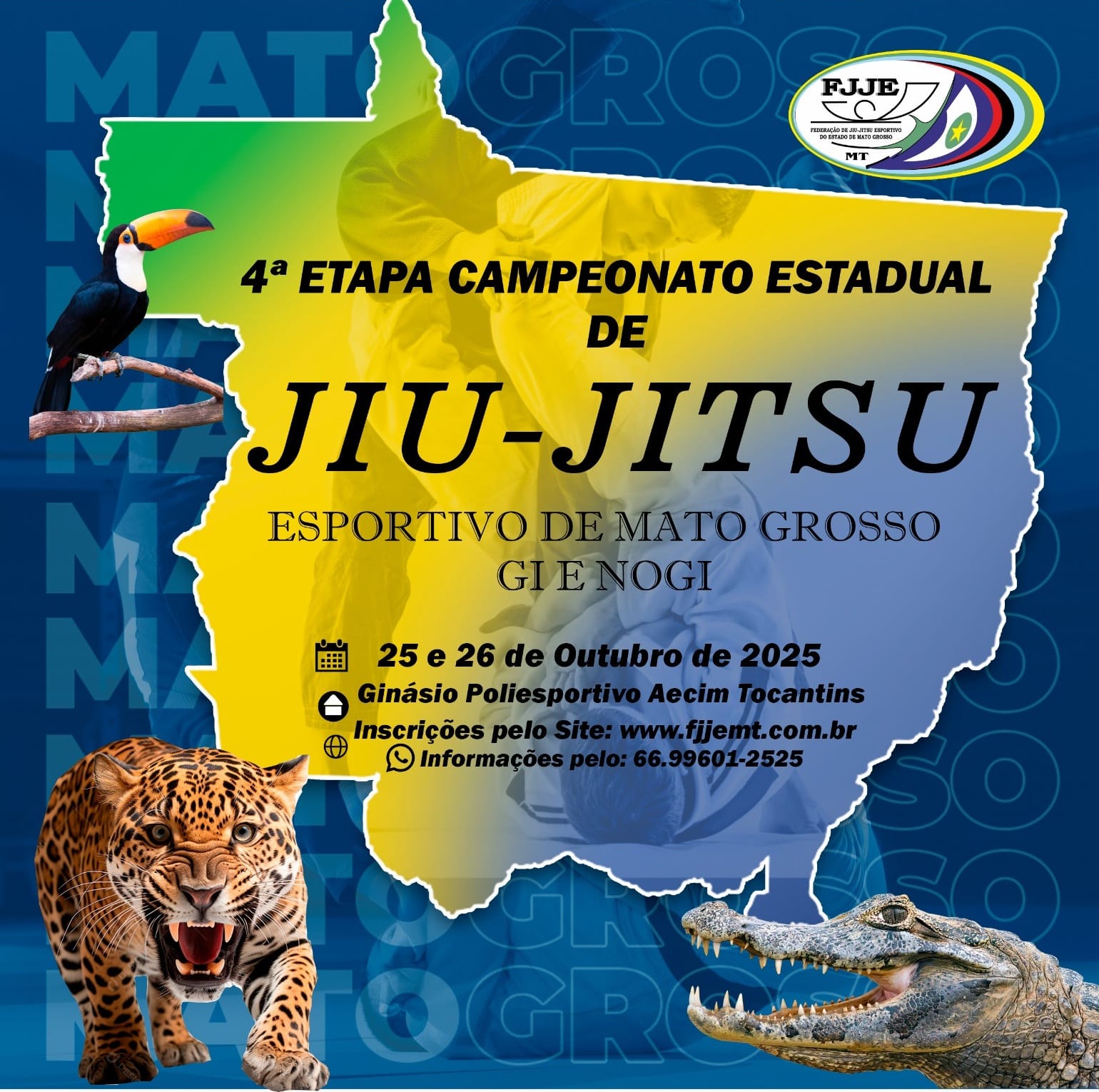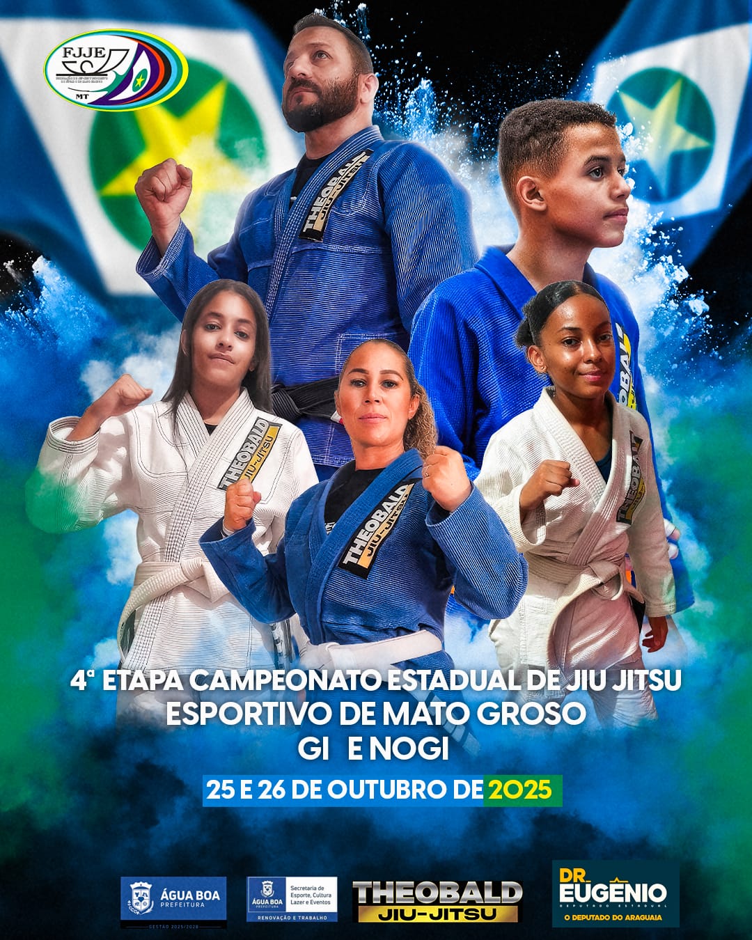 A equipe Escolinhas do Esporte – Jiu-Jitsu Água Boa representou o município na 4ª Etapa do Campeonato Estadual de Jiu-Jitsu Esportivo de Mato Grosso (FJJE-MT), realizada nos dias 25 e 26 de outubro de 2025, em Cuiabá.