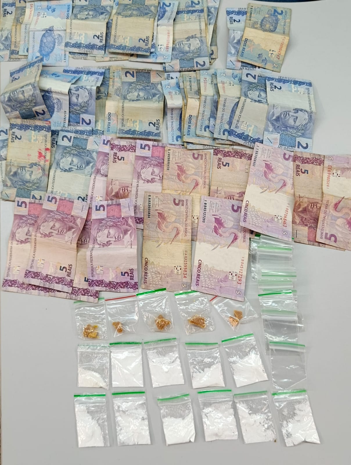 O dinheiro apreendido, em notas diversas, sugeria forte indicativo de movimentação típica do comércio ilegal de entorpecentes.