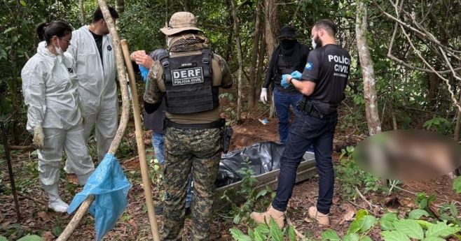 No local indicado, os agentes encontraram sinais claros de enterramentos clandestinos, onde foram localizados os dois corpos encaminhados à Politec. Os exames periciais seguirão para tentar identificar as vítimas, o que dependerá de análises técnicas, exames laboratoriais e confronto genético.