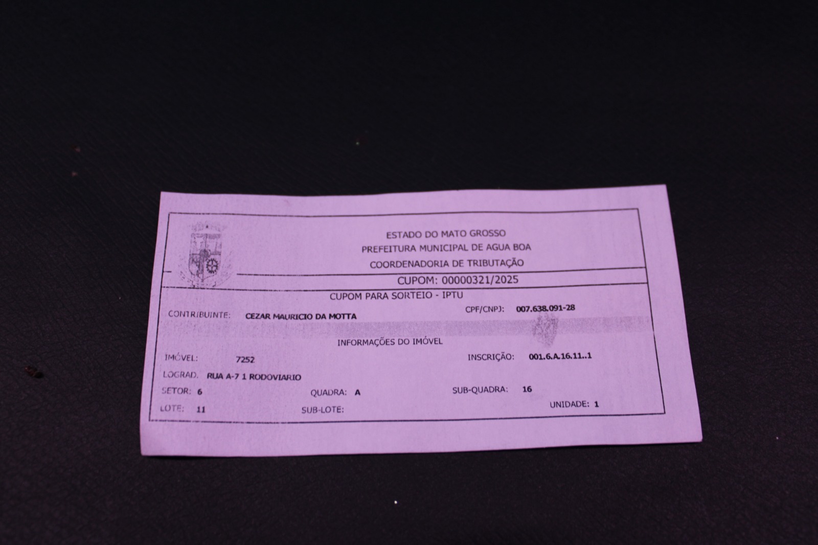 Prefeitura de Água Boa realiza sorteio do IPTU Premiado 2025