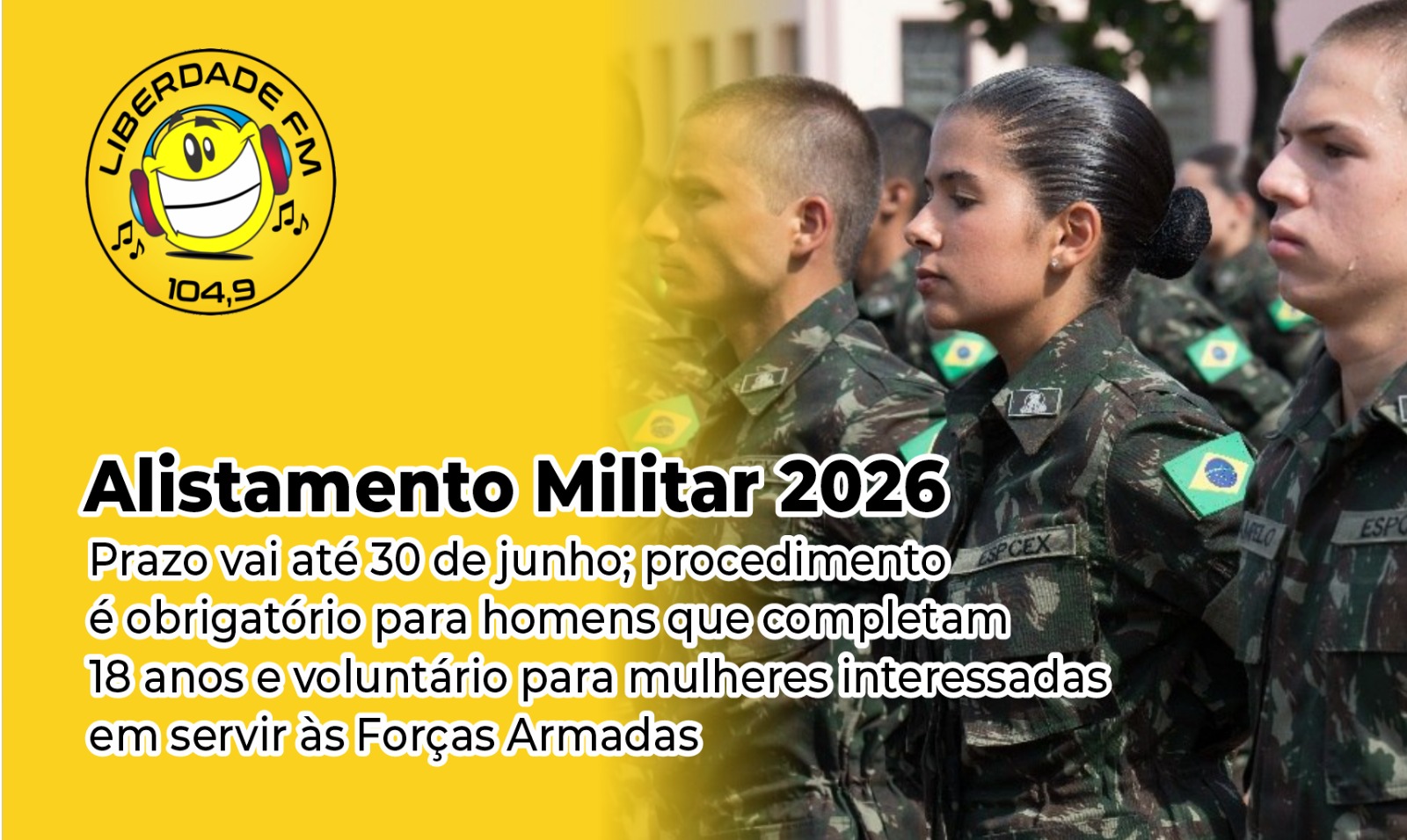 Teve início na última quinta-feira (1º) o período de Alistamento Militar 2026, que seguirá aberto até o dia 30 de junho. O processo é obrigatório para todos os jovens brasileiros do sexo masculino que completam 18 anos em 2026, inclusive aqueles que residem no exterior.