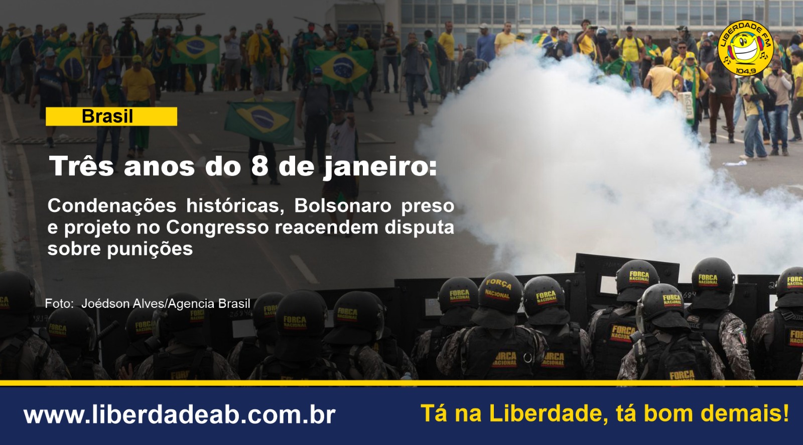 Três anos após os ataques, o 8 de janeiro segue no centro do debate político e institucional do país, simbolizando, ao mesmo tempo, a resposta firme da Justiça aos atos contra a democracia e as divergências sobre como punir — ou rever as punições — impostas aos responsáveis.