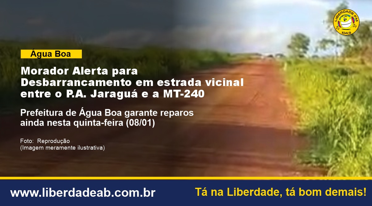 O secretário de Infraestrutura, Fabricio Mendonça, disse à Rádio Liberdade FM que ainda nesta quinta-feira (08) será feito os reparos necessários para sanar o problema na via. Dessa forma, a Prefeitura de Água Boa garante apoio e realiza manutenção contínua das estradas vicinais.