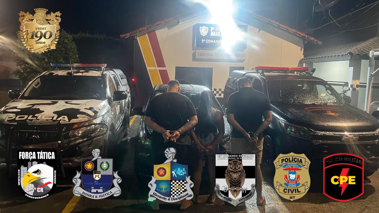 Em continuidade às diligências, e com apoio da Agência Local de Inteligência da Polícia Militar de Goiás, foi identificado que o veículo utilizado no crime era locado por um quarto suspeito. As equipes da Força Tática do 5º Comando Regional da PM de Mato Grosso, em conjunto com a CPE da PMGO, localizaram o trio em uma residência em Barra do Garças, onde foi efetuada a prisão.