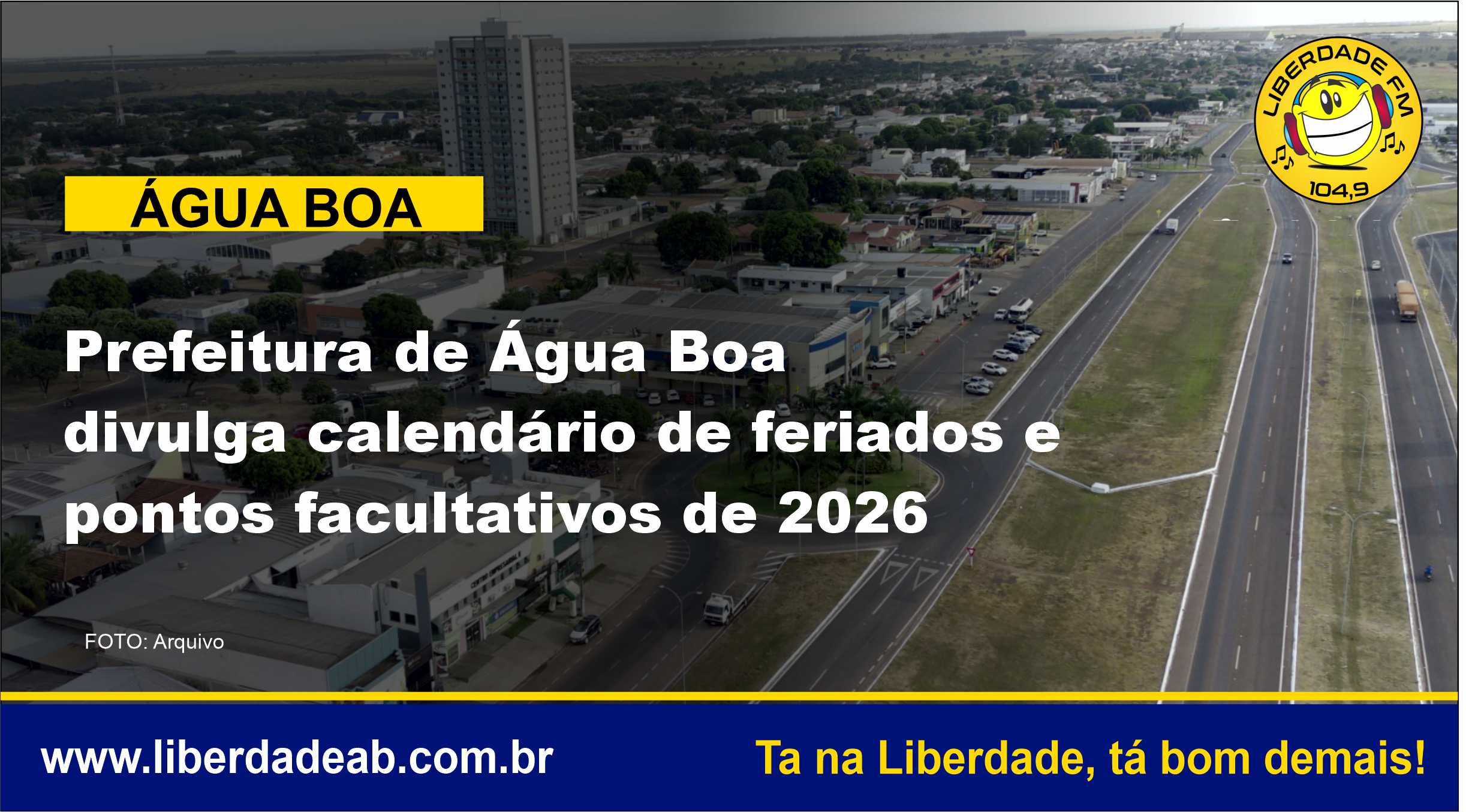 Prefeitura de Água Boa divulga calendário de feriados e pontos facultativos de 2026