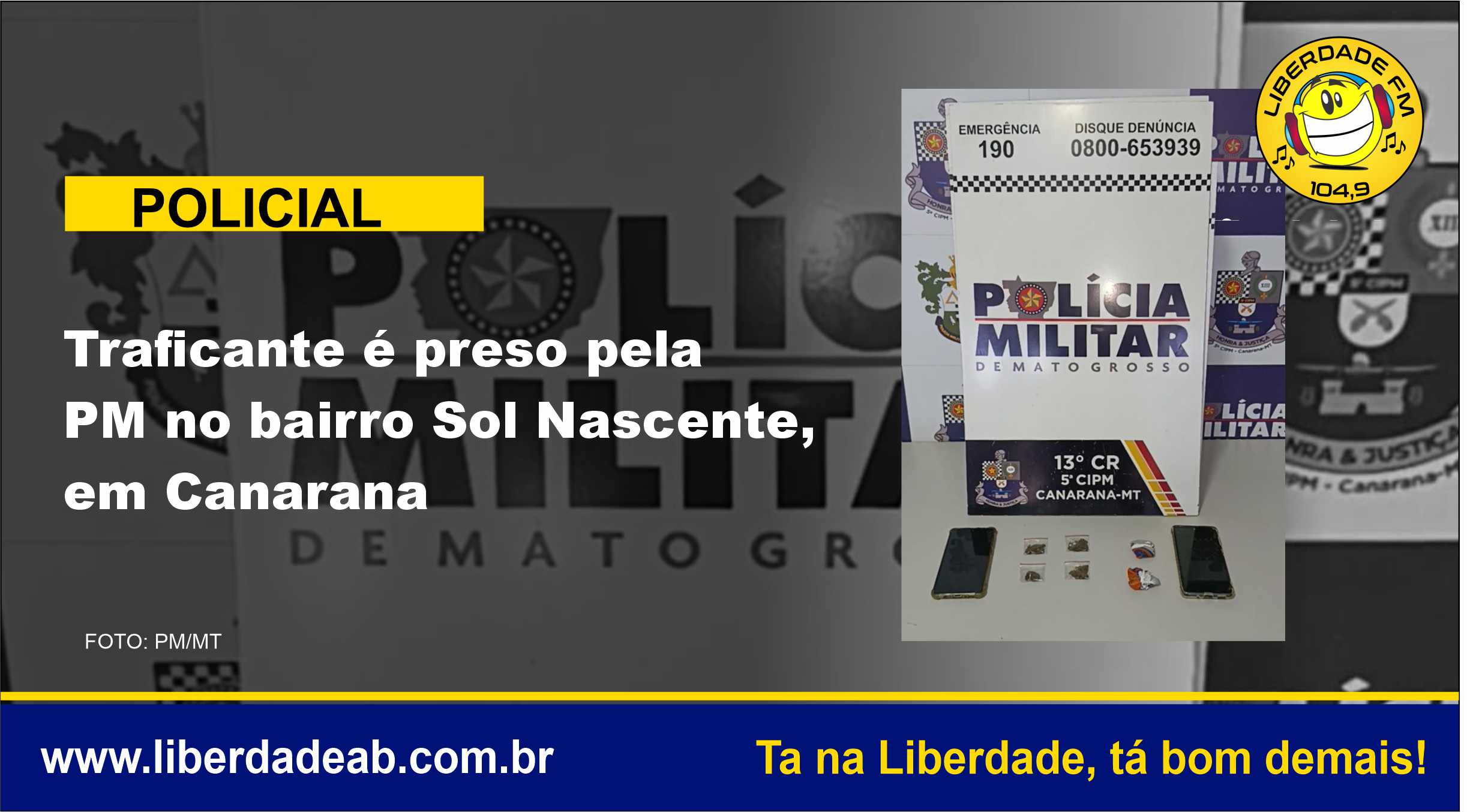 Na tarde desta terça-feira (13), a Polícia Militar prendeu um homem suspeito de tráfico de drogas no bairro Sol Nascente, em Canarana (MT). A ação foi realizada por policiais da 5ª Companhia Independente da PM durante patrulhamento em uma região frequentemente alvo de denúncias relacionadas ao comércio de entorpecentes.