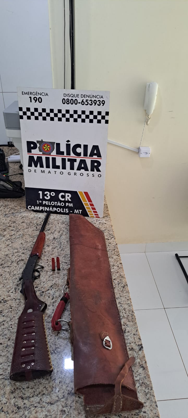 Diante do flagrante de transporte ilegal de arma de fogo, foi dada voz de prisão ao condutor, que foi encaminhado ao 1º Pelotão da Polícia Militar de Campinápolis para a confecção do Boletim de Ocorrência e, posteriormente, conduzido à Delegacia de Polícia Civil, onde foram adotadas as medidas legais cabíveis.
