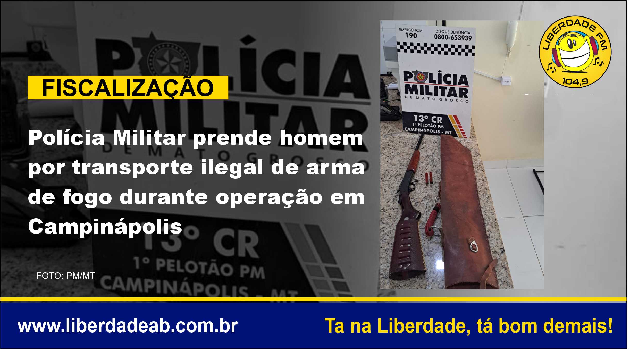 Polícia Militar prende homem por transporte ilegal de arma de fogo durante operação em Campinápolis