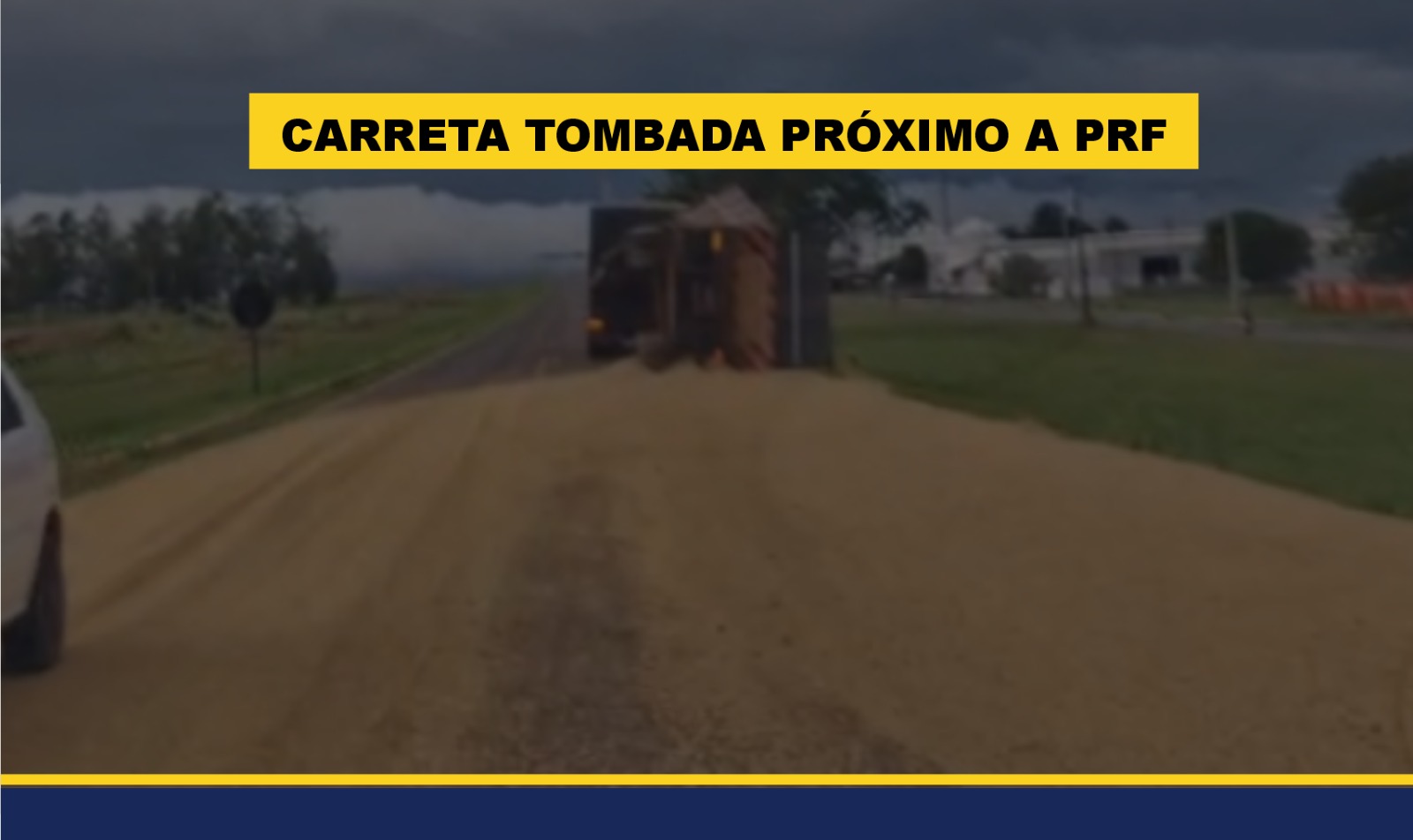 Vagão de carreta carregada com soja tomba próximo ao Posto da PRF em Água Boa